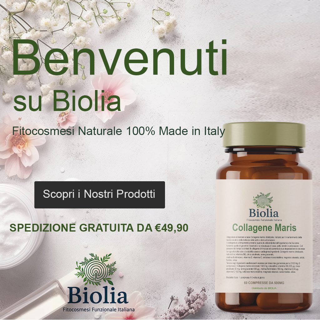 Benvenuto su Biolia.it, il tuo punto di riferimento per il benessere naturale e consapevole. Selezioniamo con cura integratori naturali, erbe fitoterapiche, gemmoderivati, tè, tisane e infusi per accompagnarti ogni giorno in un percorso di equilibrio e vitalità. Le nostre formulazioni nascono dall’unione tra scienza e natura: estratti vegetali titolati, principi attivi puri e combinazioni studiate per sostenere digestione, relax, energia, concentrazione, difese immunitarie e controllo del peso. Ogni prodotto Biolia è scelto per qualità, trasparenza e sicurezza, con schede dettagliate e consigli d’uso chiari. A completare la nostra proposta ci sono le BioliaBox, selezioni tematiche che combinano tre o più prodotti pensati per esigenze specifiche — come energia e vitalità, depurazione, relax o benessere immunitario — offrendo un percorso completo e naturale per il tuo equilibrio quotidiano. Scegliere Biolia significa affidarsi alla forza delle piante e alla purezza della natura per ritrovare benessere in modo semplice, consapevole e autentico.